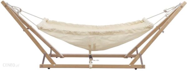 Ekologiczny hamak dla niemowląt, idealne rozwiązane na uspokojenie malucha.W zestawie wchodzą hamak i drewniany stojak.Atuty produktu:- wyprofilowany kształt zapewnia dziecku relaks;- stabilna konstrukcja i szelki zapewniają bezpieczeństwo;- zajmuje mało miejsca, można go złożyć- zastosowania również jako:kołyskahuśtawkależaczek- ekologiczne tkaniny, bezpieczne m.in. dla alergików.Parametry techniczne:- powierzchnia leżenia: ok. 90x40cm;- długość: ok. 155cm;- waga: ok. 3,4kg;- maksymalne obciążenie: 20kgRekomendowany wiek:od urodzenia od 18m-c( 0m 3m 6m 9m 12m 18m )