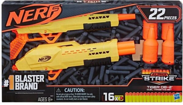 Hasbro Nerf Alpha Strike Tiger DB-2 E7561Nowa wyrzutnia Nerf – zabierze cię w sam środek ekscytujących bitew ze znajomymi i przyjaciółmi. Gdy innych ograniczają zasięg albo brak strzałek, ty możesz nieskrępowanie oddawać strzał za strzałem! Podwójna lufa to podwójna przewaga podczas potyczki. Zaledwie 3 proste kroki dzielą cię od wykonania perfekcyjnego strzału. Załaduj magazynek i ruszaj w bój! Alpha Strike jest serią, która świetnie się nadaje dla początkujących strzelców.