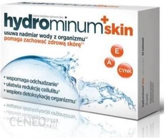 Właściwości:Hydrominum + Skin to suplement diety, który zawiera naturalne wyciągi roślinne. Składniki produktu wspomagają eliminację wody. Ponadto składniki produktu wspomagają odchudzanie, utrzymanie prawidłowej masy ciała, ułatwiają redukcję cellulitu i wspierają samopoczucie w okresie napięcia przedmiesiączkowego. Aby dodatkowo zachować zdrową skórę receptura produktu została wzbogacona o cynk i witaminę A.Wyciąg z ziela nawłoci wspomaga pracę dolnych dróg moczowych i pęcherza moczowego.Wyciąg z mniszka lekarskiego pomaga oczyścić organizm, wspiera fizjologiczną detoksykację, wspomaga ochronę przed aktywnością wolnych rodników.Wyciąg z ziela pokrzywy wspiera usuwanie wody z organizmu, wspomaga utrzymanie witalności.Wyciąg z zielonej herbaty wspomaga ochronę organizmu przed aktywnością wolnych rodników, wspiera usuwanie wody, pomaga w kontrolowaniu masy ciała.Wyciąg z nasion winogron wspiera utrzymanie prawidłowej masy ciała, wspomaga redukcję cellulitu.Wyciąg z owocu opuncji figowej wspomaga metabolizm tłuszczów, pomaga kontrolować masę ciała, wspiera ograniczanie apetytu.Witamina A pomaga w utrzymaniu stanu błon śluzowych, wspomaga proces specjalizacji komórek, wspiera utrzymanie zdrowego wyglądu skóry.Witamina E wspiera ochronę komórek przed stresem oksydacyjnym.Cynk wspomaga utrzymanie zdrowego wyglądu skóry, włosów i paznokci.
