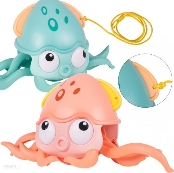 Urocza ośmiorniczka doskonała do pierwszych spacerów Twojego dziecka, oraz jako zabawka umilająca kąpiele.Dzięki możliwości ciągnięcia na sznurku zachęcamy maluszka do aktywności ruchowej, ponieważ zwierzątko porusza się tuż za nim.Ośmiorniczka podczas poruszania się idealnie odwzorowuje naturalne zwierzę, co daje gwarancję świetnej zabawy.Aby uruchomić zabawkę w wodzie należy nakręcić ją specjalnie do tego dedykowanym pokrętłem.Dzięki temu dziecko może podczas kąpieli uczyć się w jaki sposób poruszają się zwierzątka morskie.Ośmiornica bawi i uczy, stymulując rozwój psycho-motoryczny malca.Odkryj ocean zabawy i chichotek dzięki fascynującej ośmiornicy. Wesoła zabawka przy każdym pociągnięciu sznurka będzie poruszał nogami przypominając, żywe stworzenie. To magiczny ruch, który wywoła uśmiech na twarzy każdego dziecka.Wesoła Ośmiorniczka:• Morskie stworzenie do ciągnięcia, którego ruch przypomina prawdziwą ośmiornicę.• Zachęca dzieci do aktywnej zabawy.• Rozwija wyobraźnię, motorykę dziecka i wiedzę o zależności przyczynowo-skutkowej.• Bezpiecznej długości sznurek.• Wysokiej jakości bezpieczna zabawka, nie zawiera BPA.• Przeznaczone dla dzieci w wieku 12 miesięcy +.PARAMETRY:Wymiary opakowania:szerokość – 21,5 cmwysokość – 12,5 cmdługość – 12,5 cmWymiary ośmiorniczki:wysokość – 13 cmszerokość – 11 cmszerokość z nóżkami– 25 cmdługość sznurka – 72 cmW zestawie:OśmiorniczkaSznurekInstrukcja obsługi