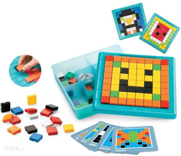 Zacznij kreatywną zabawę! Wyjmij plastikowy pojemnik i otwórz pokrywę. Wyjmij kolorowe elementy mozaiki i umieść w przegródkach. Wybierz jedna z 20 dwustronnych kart pracy. Zamieść ją w otworze przykrywy i zacznij zabawę umieszczając kwadratowe elementy w odpowiednie miejsca. Każdy kolor przypisany jest do innej figury geometrycznej. Na jednej stronie karty pracy są figury geometryczne przypisane w odpowiednie okienka, na drugiej stronie karty pracy jest obrazek jaki ostatecznie ułożymy.Zabawka pomaga rozwijać małą motorykę i stymuluje zmysły. Żywe kolory przykuwają uwagę dziecka i zachęca je do zabawy.W pudełku znajduje się:Pojemnik z 8 przegródkami na elementyPrzykrywka będąca podstawą do układania mozaiki20 kart pracy175 elementów mozaikiGłówne cechy produktu:Producent Smily PlayDla dzieci od 3 roku życiaObrazkowa mozaika175 elementówZabawa rozwija wyobraźnię i kreatywnośćPomaga rozwijać zmysły dzieckaWymiary: 24 x 24 x 6 cmWysoka jakość wykonania